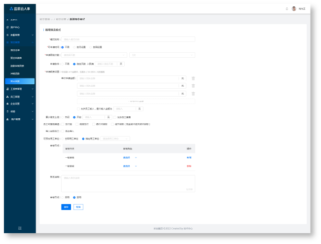 · 对该员工是否能申请预支进行设置
